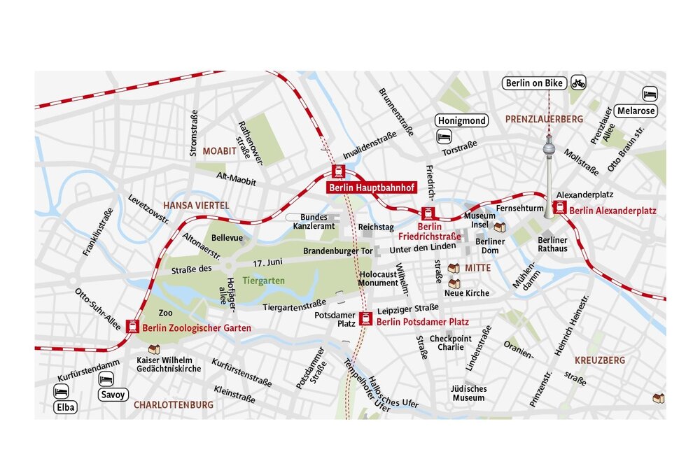 - In Berlijn is in treinticket inbegrepen op dag van aankomst en vertrek station – hotel / hotel - station per trein, S-Bahn, U-Bahn, tram en/of bus