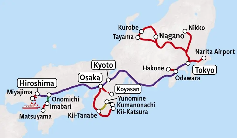 o.a. Tokyo, Fuji, Kyoto, Hiroshima