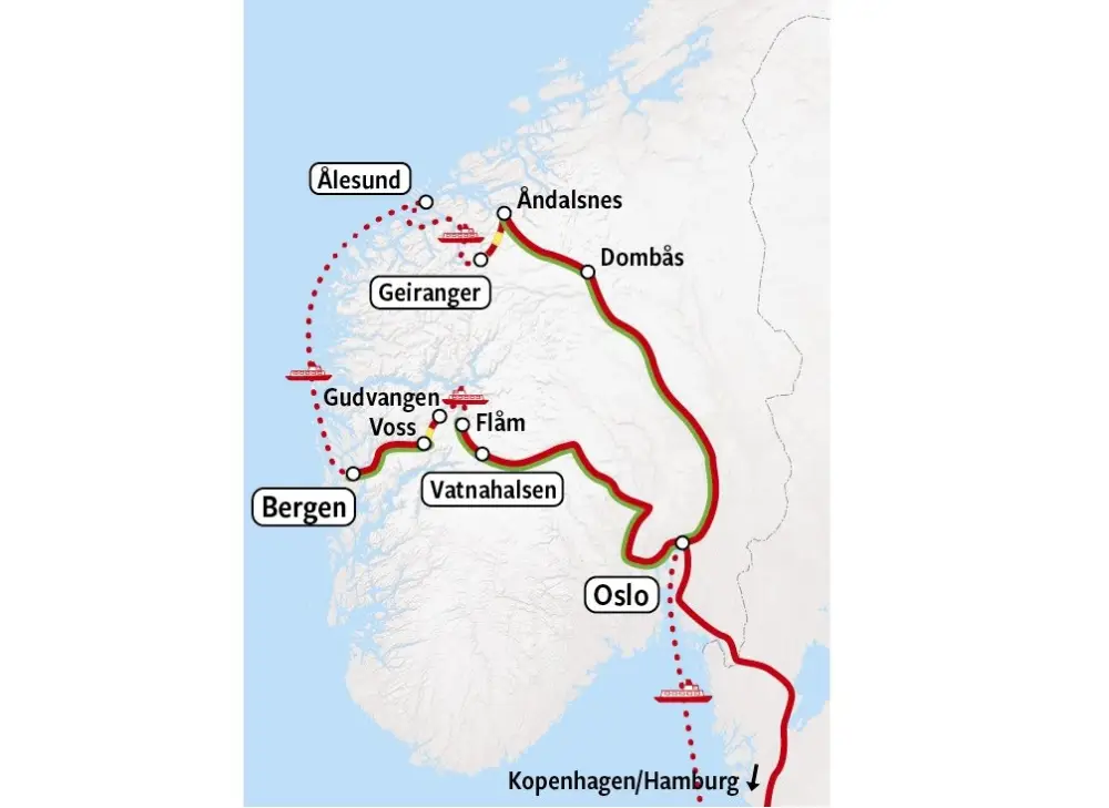 Raumaspoorwegen, Trollstigen, Geirangerfjord, Ålesund, Bergen