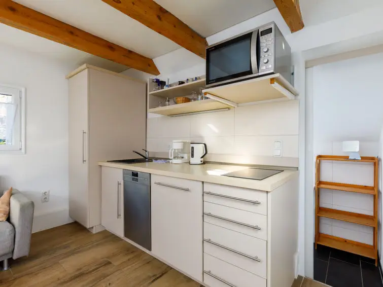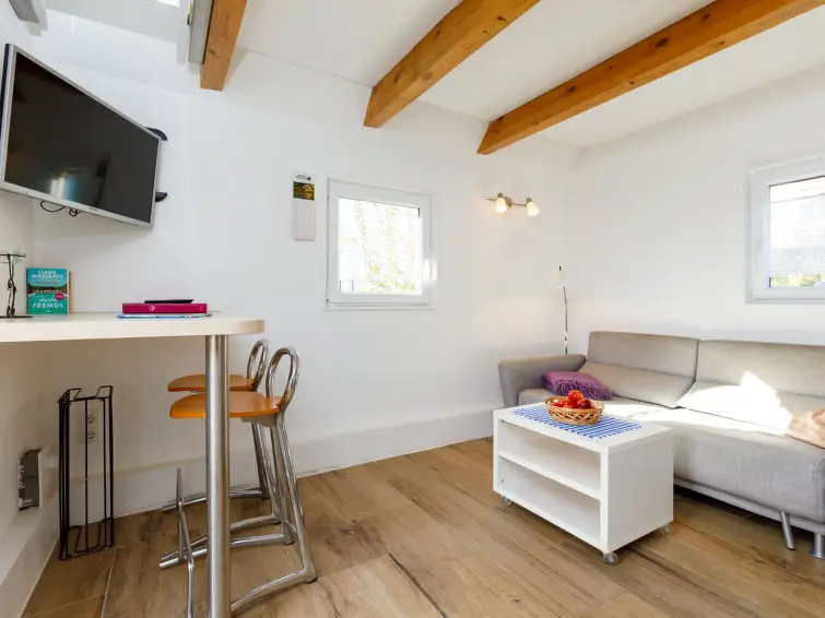 Het huis heeft 1 kamer en strekt zich uit over 26 m2 op de begane grond. Het is doelmatig en rustiek ingericht, waardoor het een knusse en comfortabele sfeer biedt voor gasten. Bij binnenkomst vind je de woon-/eetkamer, die is uitgerust met een comfortabele tweepersoons slaapbank, satelliet-tv (Flatscreen TV) en een eethoek. Vanuit de woonkamer is er toegang tot het terras, waar gasten kunnen genieten van de buitenlucht. De open keuken is voorzien van een afwasmachine, 2 inductiekookplaten, broodrooster, waterkoker, magnetron en een elektrische koffiemachine. Een douche en toilet zijn ook beschikbaar op de begane grond.