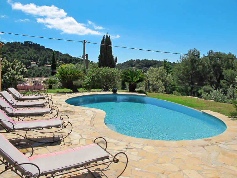 Mooi eengezinswoning 5 km van het centrum van Carqueiranne, 10 km van het centrum van Hyères, 27 km van het centrum van Toulon, tegen een helling, in een woonwijk, 4 km van zee, 4 km van het strand. Voor alleengebruik: terrein 1.500 m2 (omheind) met gazon en planten, openluchtzwembad niervormig (9 x 5 m, 110 - 210 cm diepte, seizoensgebonden beschikbaarheid: 01.Jan. - 31.Dec.). Buitendouche. In het huis: alarmsysteem. Parkeerplaats (voor 4 auto's), eigen garage. Winkel 3 km.