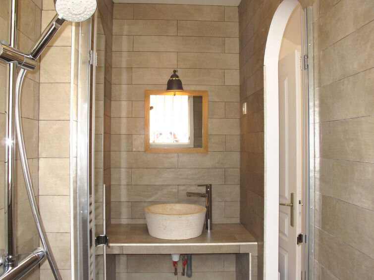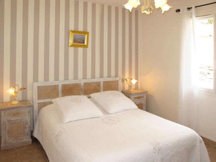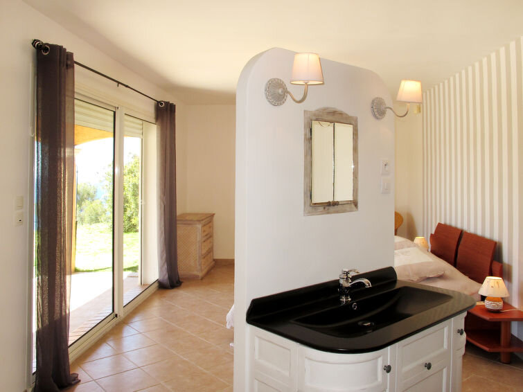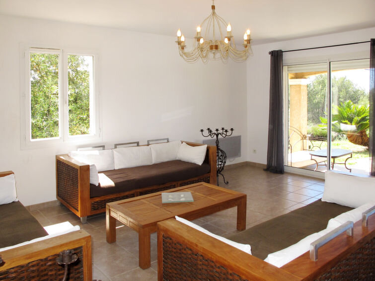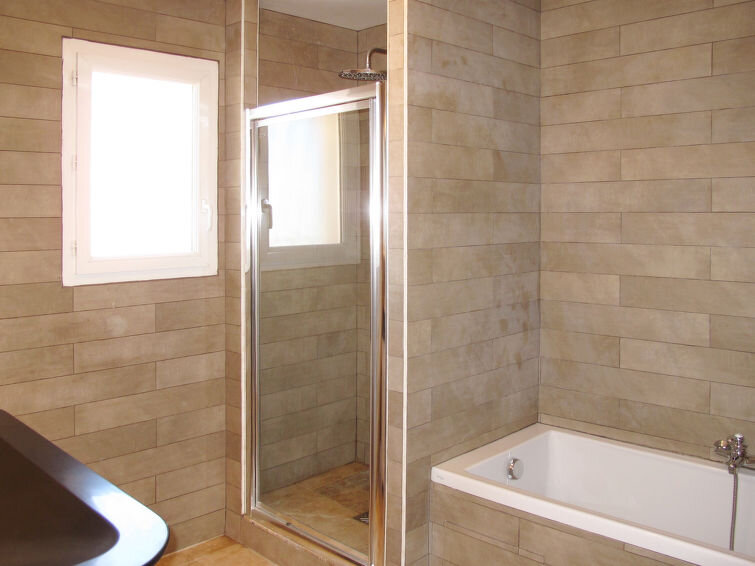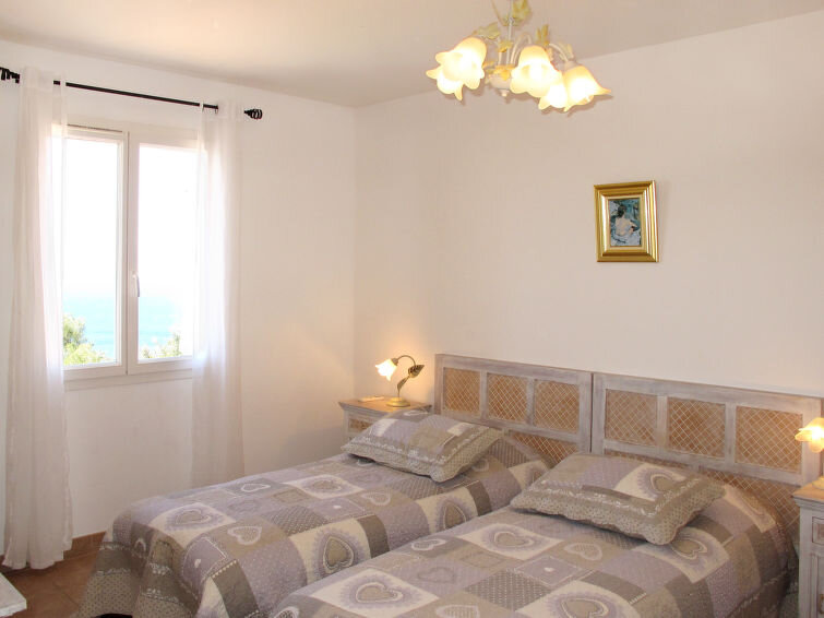 Huis met 6 kamers, 165 m2 over 2 verdiepingen, op het zuiden gelegen. Smaakvol ingericht: woon-/eetkamer met eettafel en Sat-TV. Uitgang naar het terras. 1 kamer met 1 2-pers bed (160 cm), douche. Uitgang naar het terras. 1 kamer met 1 2-pers bed (160 cm), douche. Open keuken (oven, afwasmachine, 3 inductiekookplaten, magnetron, diepvriezer, elektrische koffiemachine). Uitgang naar het terras. Aparte WC. Bovenverdieping: 1 kamer met 1 2-pers bed (160 cm). Uitgang naar het balkon. 2 kamers, elke kamer heeft 2 bedden. Aparte WC, bad/douche/WC, dubbele wastafels. Elektrische verwarming. Terras gedeeltelijk overdekt. Terrasmeubelen, barbecue, ligstoelen. Uitzicht op zee. Ter beschikking: wasmachine, droger, kluis. Internet (Internet (WiFi), gratis). Maximaal 1 huisdier/hond toegestaan.