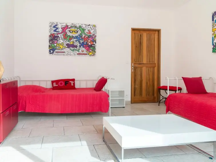 Huis met 4 kamers, 180 m2 over 2 verdiepingen. Licht, modern en smaakvol ingericht: woon-/eetkamer met eettafel, Sat-TV en DVD. Uitgang naar het terras. 1 kamer met 1 2-pers bed (160 cm), douche en air-conditioning. 1 kamer met 2 bedden. Open keuken (oven, afwasmachine, 5 inductiekookplaten, broodrooster, waterkoker, magnetron, diepvriezer, elektrische koffiemachine). Uitgang naar het terras. Douche/WC. Bovenverdieping: 1 kamer met 1 2-pers bed (160 cm), air-conditioning. Badkamer, aparte WC. Gas-verwarming. Terras overdekt. Terrasmeubelen, barbecue, ligstoelen (4). Uitzicht op de tuin. Ter beschikking: wasmachine, droger, strijkijzer, kinderbed. Internet (Internet (WiFi), gratis). Rookvrij huis. Maximaal 2 huisdieren/honden toegestaan. Rookmelders.