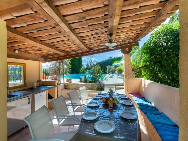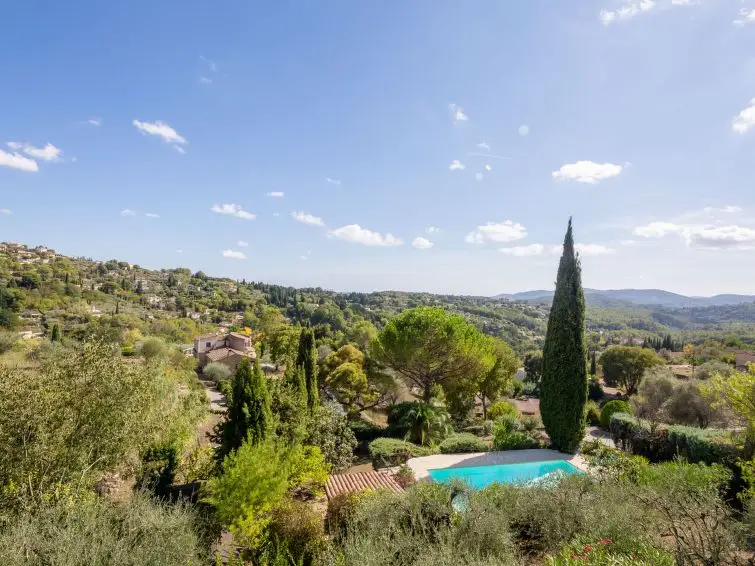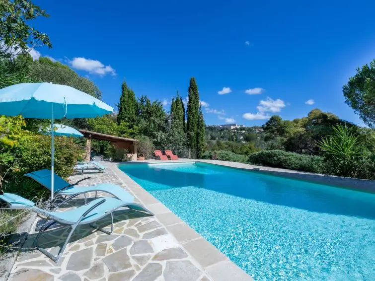Groot, mooie villa, omgeven door bomen. 4 km van het centrum van Grasse, 22 km van het centrum van Cannes, zonnige ligging tegen een helling, in een woonwijk, 22 km van zee, te midden van groen, op het zuiden. Voor alleengebruik: groot tuin op verschillende niveaus, 1.750 m2 (omheind) met planten en bomen, openluchtzwembad (12 x 6 m, seizoensgebonden beschikbaarheid: 01.Jan. - 31.Dec.). Buitendouche, poolhouse met koelkast en fornuis, terras, tuinmeubelen, barbecue, parkeerplaats op het terrein. Supermarkt 3 km.