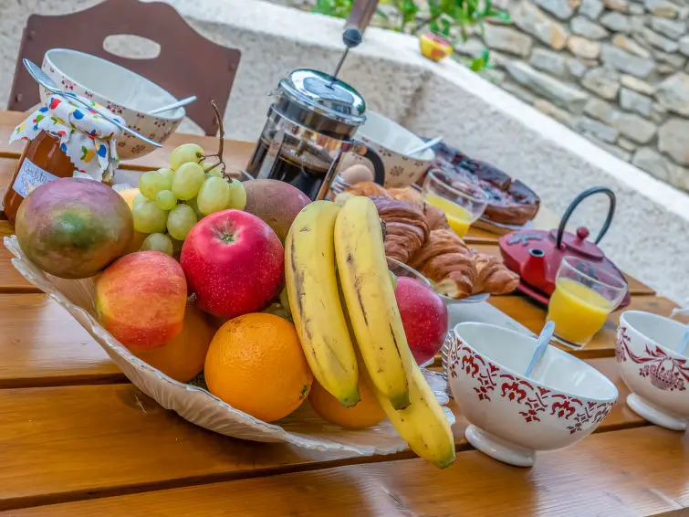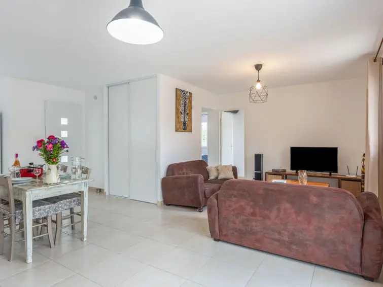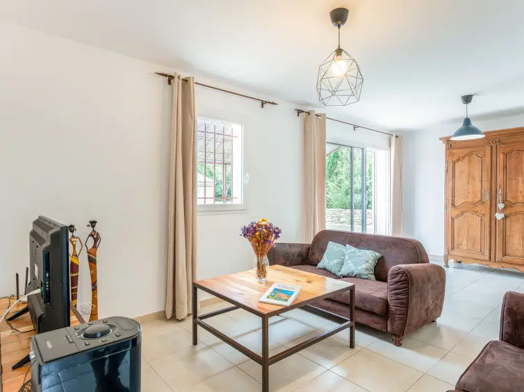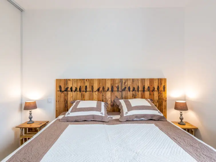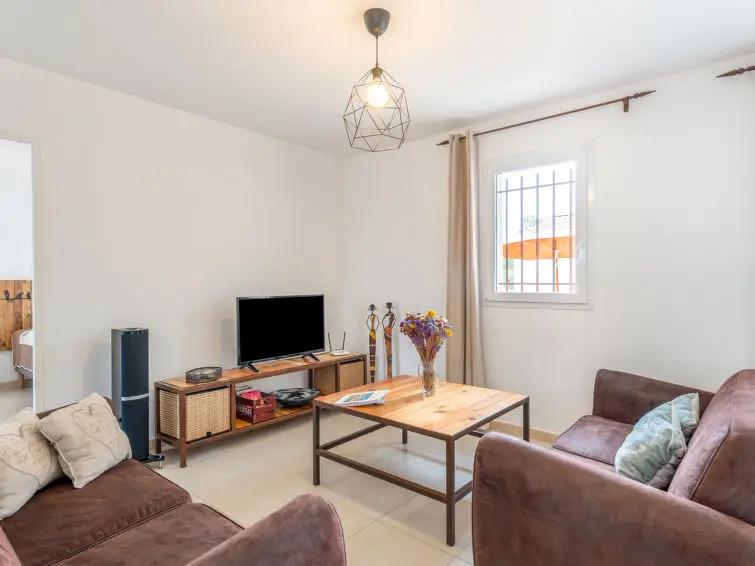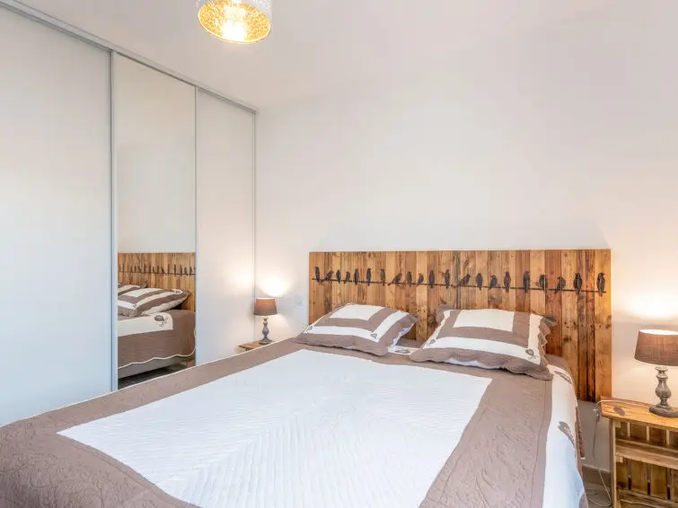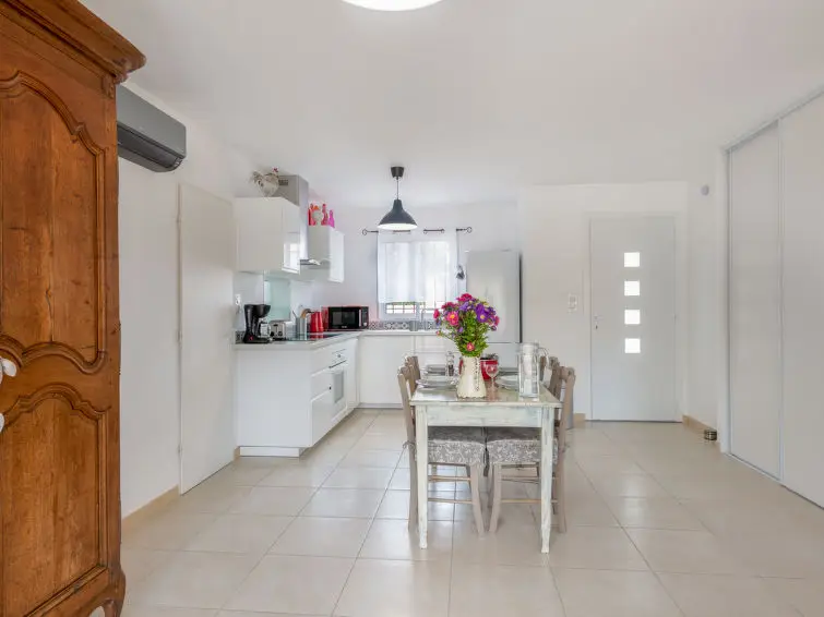 Huis met 3 kamers, 80 m2. Licht, modern en stijlvol ingericht: hal. Woon-/eetkamer met eettafel en TV (Flatscreen TV). Uitgang naar het terras. 1 kamer met 1 2-pers bed (1 x 160 cm, lengte 200 cm). 1 kamer met 2 bedden (80 cm, lengte 200 cm). Open keuken (oven, afwasmachine, 3 inductiekookplaten, magnetron, diepvriezer, elektrische koffiemachine). Uitgang naar het terras. Douche, aparte WC. Verwarming, air-conditioning. Terras 13 m2. Terrasmeubelen, barbecue, ligstoelen (4). Ter beschikking: wasmachine, strijkijzer, kinderstoel, kinderbed. Internet (Internet (WiFi), gratis). Parkeerplaats (2 Auto's), garage. Rookvrij huis. Rookmelders.
