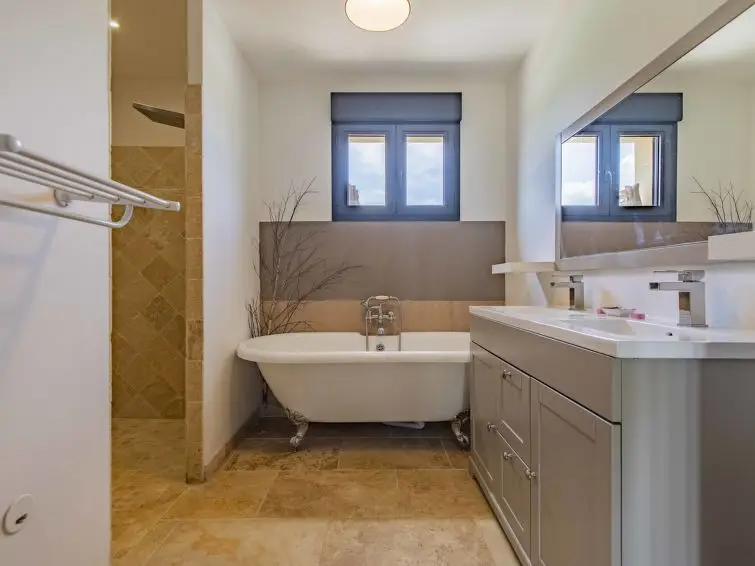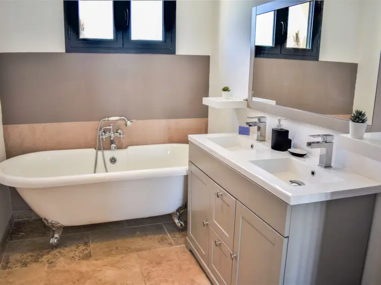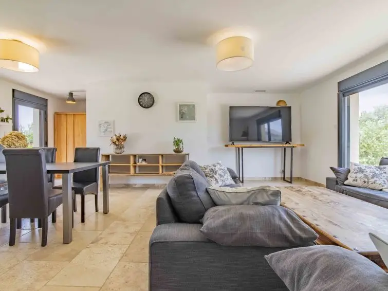 Huis met 4 kamers, 115 m2. Woon-/eetkamer 35 m2 met panoramavenster met TV (Flatscreen TV), air-conditioning. Uitgang naar de tuin, naar het terras. 1 kamer met 1 2-pers bed (160 cm), aparte WC en bad/douche. Uitgang naar de tuin. 1 kamer met 1 2-pers bed (160 cm), bad en TV (Flatscreen TV). Uitgang naar de tuin. 1 kamer met 1 2-pers bed (160 cm), douche, TV en Flatscreen TV. Uitgang naar de tuin. Open keuken (5-pits kookplaat, oven, afwasmachine, magnetron, diepvriezer, elektrische koffiemachine). Aparte WC. Verwarming. Terras 60 m2, overdekt, terras 50 m2, overdekt. Terrasmeubelen, barbecue, ligstoelen (6). Uitzicht. Ter beschikking: wasmachine, droger, kinderstoel, kinderbed. Internet (Internet (WiFi), gratis). Geschikt voor families.