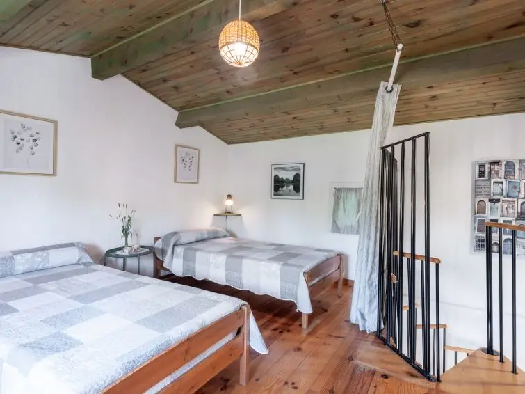 Huis met 2 kamers, 60 m2 over 2 verdiepingen. Licht: woon-/eetkamer met eettafel en Sat-TV. Kleine, open keuken (oven, afwasmachine, 4 kookpitten (vlammen), broodrooster, waterkoker, magnetron, diepvriezer, elektrische koffiemachine). Douche/WC. Elektrische verwarming. Bovenverdieping: (wenteltrap) galerij met 2 bedden. 1 kamer met 1 2-pers bed. Houten vloeren. Ter beschikking: wasmachine, klamboe, kinderstoel, kinderbed. Internet (Internet (WiFi), gratis). Maximaal 1 huisdier/hond toegestaan. In plaats van een afgesloten slaapkamer bevinden sommige slaapgedeeltes zich in een open ruimte (galerij, nis, etc.).