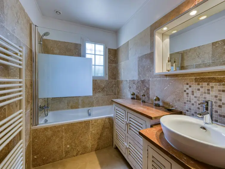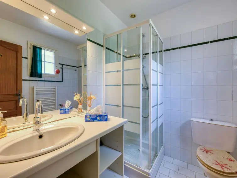 Huis met 4 kamers 105 m2. Comfortabel ingericht: groot woon-/eetkamer met eettafel, TV, DVD en air-conditioning. Uitgang naar het terras. 1 kamer met 1 2-pers bed (160 cm), bad en air-conditioning. 1 kamer met 1 bed. 1 kamer met 1 2-pers bed. Open keuken (oven, afwasmachine, 3 keramische glas kookplaten, broodrooster, waterkoker, magnetron, diepvriezer, elektrische koffiemachine). Douche/WC. Elektrische verwarming. 2 terrassen. Terrasmeubelen, barbecue (verrijdbaar), ligstoelen (4), bergruimte. Ter beschikking: wasmachine, strijkijzer, kinderstoel, kinderbed. Internet (Internet (WiFi), gratis). Rookvrij huis.