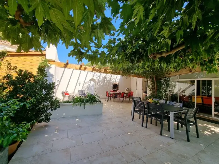 Huis 5-kamers 150 m2 op 2 verdiepingen. Volledig gerenoveerd, mooi ingericht: groot hal met Kleedkamer. Woon-/eetkamer met TV (Flatscreen TV), stereo-installatie en DVD. Uitgang naar het terras. Bureau. Uitgang naar het terras. 1 kamer met 2 bedden (80 cm, lengte 200 cm), air-conditioning. Keuken (oven, afwasmachine, 4 inductiekookplaten, broodrooster, waterkoker, magnetron, diepvriezer, elektrische koffiemachine). Aparte WC, bad/douche/WC. Verwarming. Bovenverdieping: 1 kamer met Kleedkamer met 1 2-pers bed (1 x 160 cm, lengte 200 cm), air-conditioning. Uitgang naar het balkon. Badkamer, aparte WC. Balkon, terras 100 m2, 2 terrassen 15 m2, overdekt. Terrasmeubelen, elektrische barbecue, ligstoelen (5). Ter beschikking: wasmachine, droger, strijkijzer, klamboe, kinderstoel, kinderbed tot 2 jaar, haardroger. Internet (Internet (WiFi), gratis). Rookvrij huis. Rookmelders.