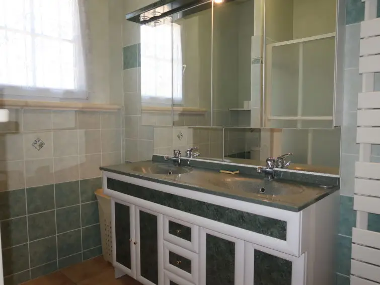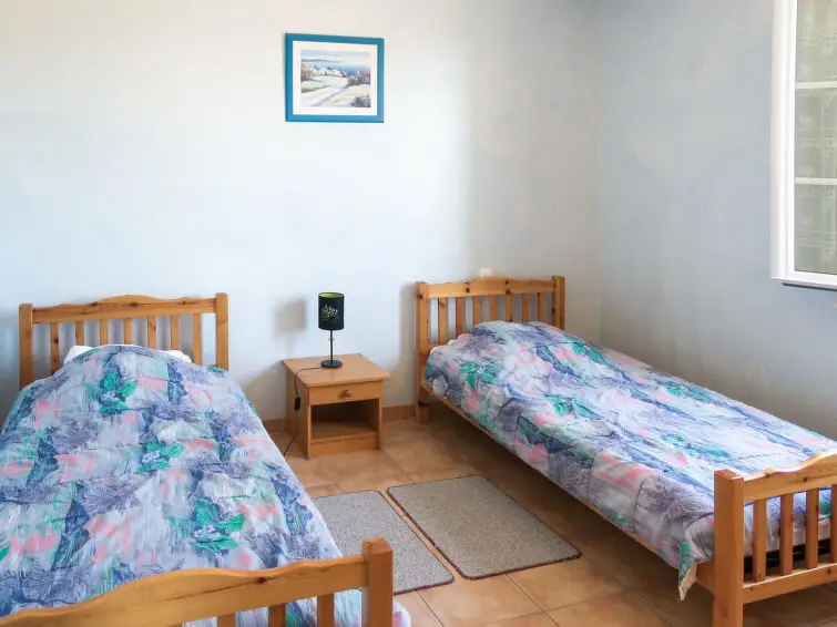 Op de bovenverdieping zijn er 4 slaapkamers: twee kamers met elk twee eenpersoonsbedden en twee kamers met elk een tweepersoonsbed. Er is ook een badkamer met bad en toilet op deze verdieping. Het huis wordt verwarmd door olie-verwarming.