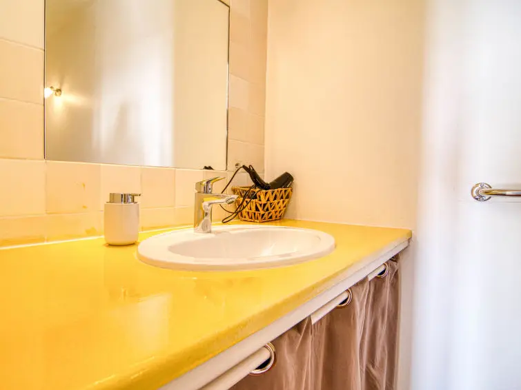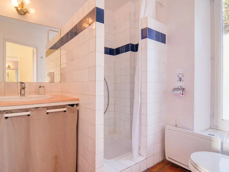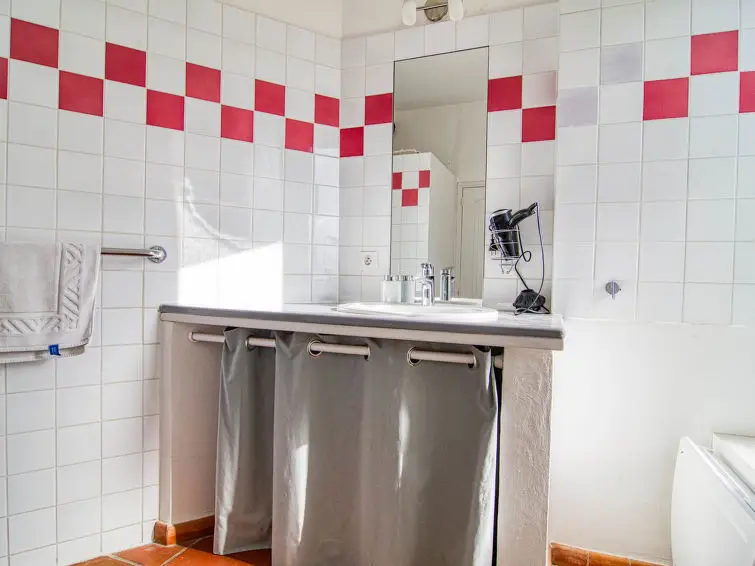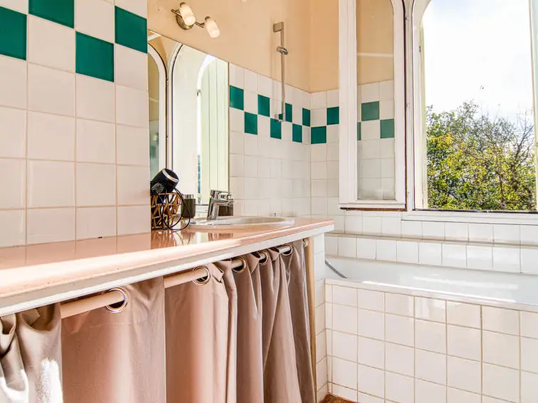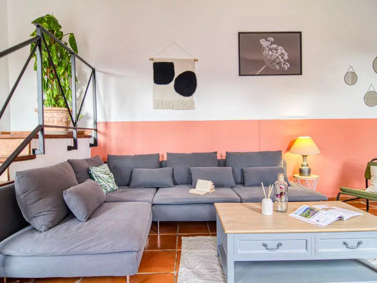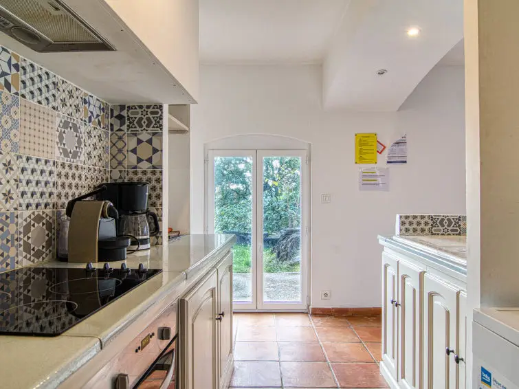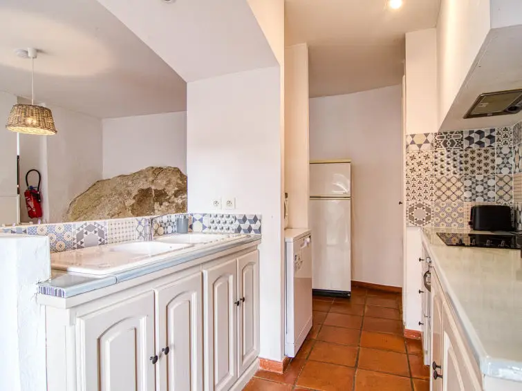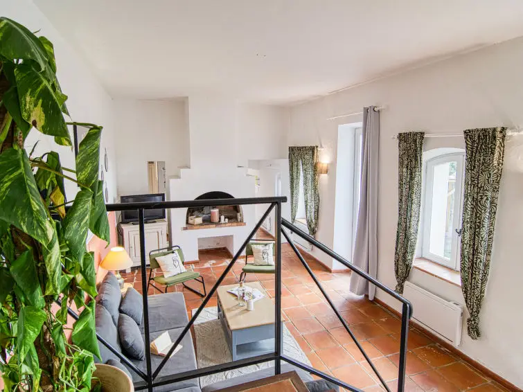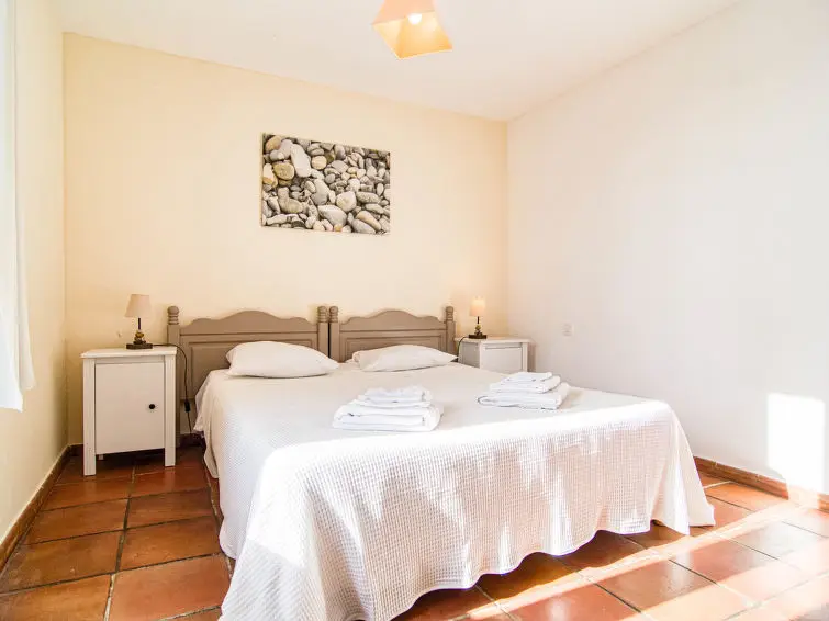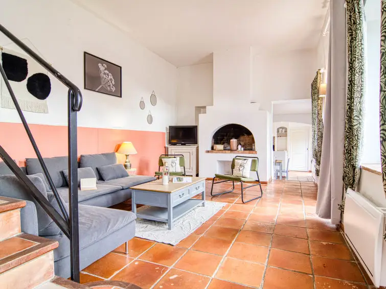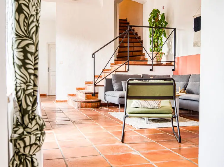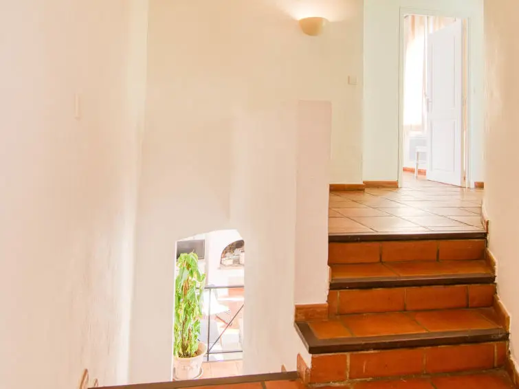 Het huis is een comfortabel en mooi ingericht rijtjeshuis met 5 kamers, verdeeld over 2 verdiepingen. Op de begane grond bevindt zich de woonkamer met een gezellige open haard (alleen voor decoratie), een televisie en airconditioning, samen met een douche en toilet. Vanuit de woonkamer heeft u toegang tot het terras, waar u kunt ontspannen en genieten van de buitenlucht. De keuken is volledig uitgerust met een oven, afwasmachine, 4 keramische glas kookplaten, magnetron, elektrische koffiemachine en andere benodigdheden. Er is ook een apart toilet op deze verdieping.