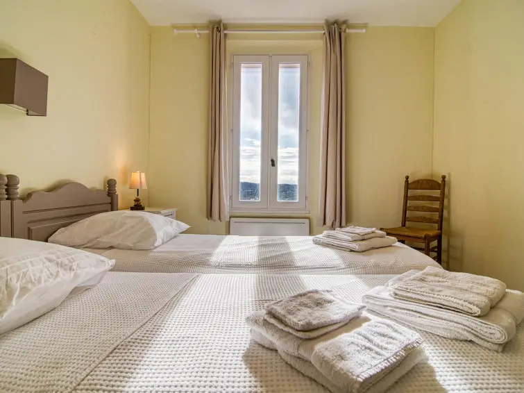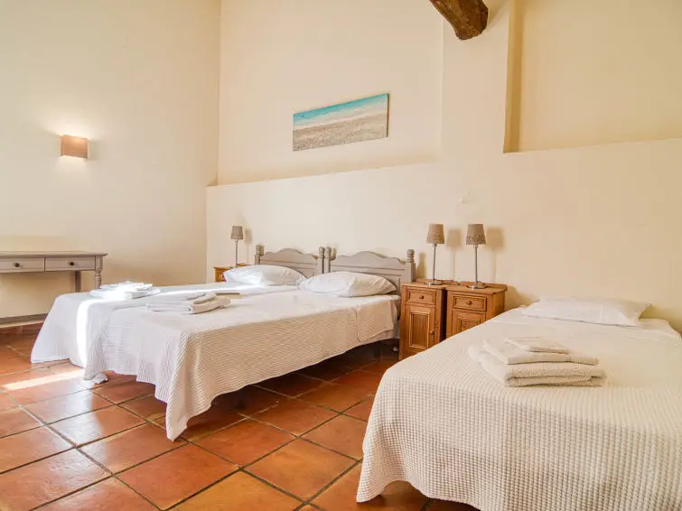 Op de bovenverdieping bevinden zich 4 slaapkamers en 3 badkamers. Eén slaapkamer heeft 3 eenpersoonsbedden en een eigen badkamer met bad en toilet. De andere twee slaapkamers hebben elk een tweepersoonsbed en een eigen badkamer met douche en toilet. De vierde slaapkamer heeft twee eenpersoonsbedden en een eigen badkamer met douche en toilet. Het huis wordt verwarmd door elektrische verwarming.