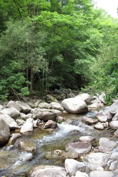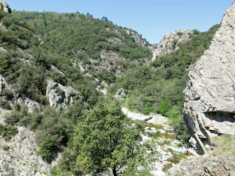 Gezellig, rustiek huis, omgeven door bomen. 1.2 km van het centrum van Valgorge, 20 km van het centrum van Largentière, 40 km van het centrum van Aubenas, geïsoleerde ligging, 130 m van de rivier, te midden van groen. Voor alleengebruik: tuin 2.200 m2 (niet omheind) met bomen, wilde tuin, weide, parkeerplaats (voor 2 auto's) op het terrein. Winkel 1.2 km, supermarkt 20 km, restaurant 1.2 km. Wandelgebied Chemins de randonnées, Chemins de randonnées vélos. Het natuurstenen huis ligt ca. 20 m van de kleine, ongestoorde landweg die van Valgorge naar Joannas leidt. Het eigendom grenst aan de beek "La Beaume" (directe toegang via een steil, rotsachtig voetpad van ongeveer 130 m lang).