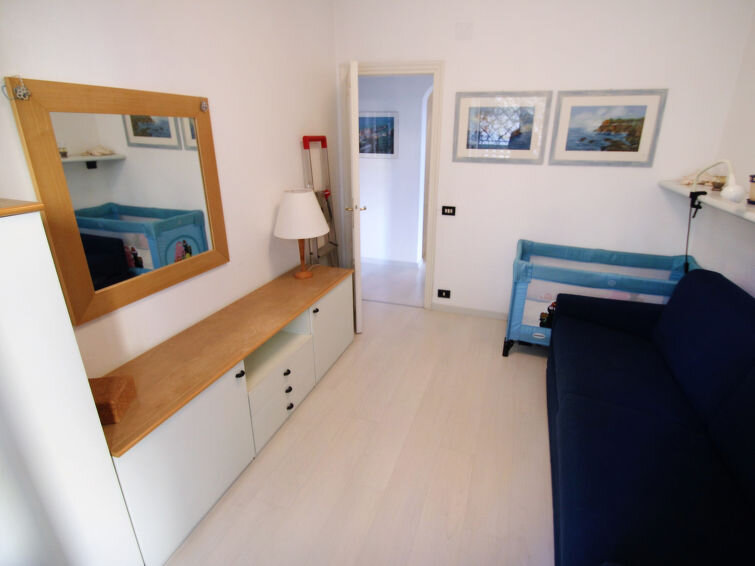 Appartement 3-kamers 60 m2 op de 1e verdieping. Comfortabel ingericht: woon-/eetkamer met 1 slaapplaats en TV. 1 kamer met 1 2-pers divanbed. Uitgang naar het terras. 1 2-pers. kamer. Kookhoek (4-pits kookplaat, magnetron, diepvriezer). Douche/bidet/WC. Gas-verwarming. Verwarming alleen beschikbaar van 01.11. tot 31.03. Terras 15 m2. Terrasmeubelen. Beperkt uitzicht op zee. Ter beschikking: wasmachine, kinderstoel, haardroger. Internet (Internet (WiFi), gratis).