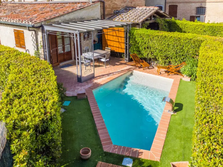 Mooi, gezellig, historisch landhuis "The Nest", eenzijdig aangebouwd, uit de XIe eeuw. 14 appartementen in de woning. In het gehucht Torri, 4 km van het centrum van Poggibonsi. Voor alleengebruik: openluchtzwembad (seizoensgebonden beschikbaarheid: 01.Mei. - 31.Okt.). Buitendouche, terras (22 m2), tuinmeubelen, barbecue, onderhoud zwembad door de eigenaar/tuinman. 200 m lange toegangsweg (onverharde weg). 50 m voetpad naar het huis. Parkeerplaats (voor 2 auto's) op 50 m. Supermarkt 3.5 km, restaurant 3.8 km, bar 2.5 km, station "Poggibonsi" 4 km, zandstrand "Marina di Cecina" 76 km, openluchtzwembad 4 km, overdekt zwembad 4 km. Attracties in de buurt: Castellina in Chianti 25 km, San Gimignano 6 km, Siena 23 km, Firenze 36 km. Geschikt voor families, baby uitrusting (incl.).
