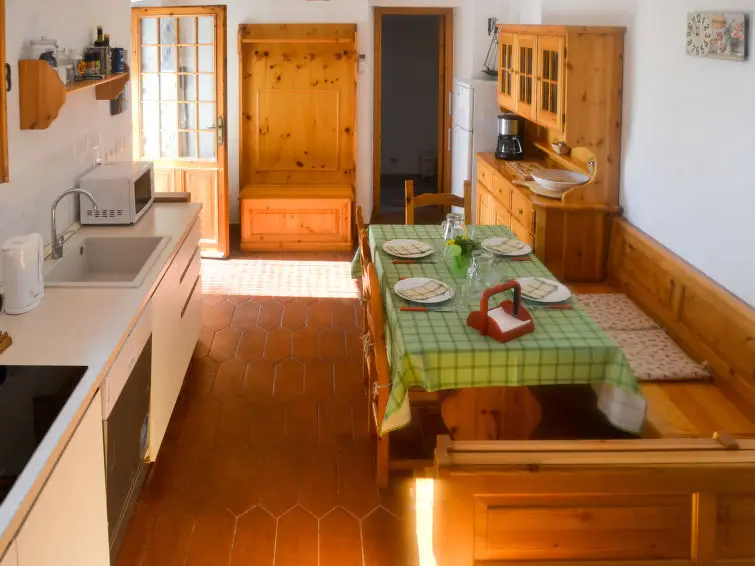 Huis 2-kamers 55 m2 op 2 verdiepingen. Doelmatig ingericht: woonkeuken (afwasmachine, 4 inductiekookplaten, broodrooster, waterkoker, magnetron, diepvriezer, elektrische koffiemachine) met eettafel. Uitgang naar de zitplaats in de tuin. Douche/bidet/WC. Air-conditioning, heteluchtverwarming. Bovenverdieping: open galerij met afgeschuinde daken met 1 2-pers divanbed (140 cm), 1 2-pers bed en Sat-TV. Panoramazicht op zee en het dal. Ter beschikking: wasmachine, haardroger. Internet (Internet (WiFi), gratis). Niet rokers woning. Maximaal 1 huisdier/hond toegestaan. In plaats van een afgesloten slaapkamer bevinden sommige slaapgedeeltes zich in een open ruimte (galerij, nis, etc.).