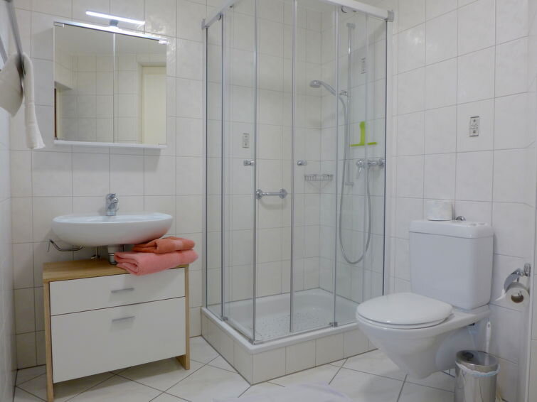 Bij binnenkomst betreed je de open woon-/eetkamer van 20 m2, die is uitgerust met een comfortabele tweepersoonsdivan (160 cm x 200 cm), kabel-tv, radio en een cd-speler. Vanuit deze ruimte heb je directe toegang tot de zitplaats in de tuin, waar je kunt ontspannen en genieten van de omgeving. Er is een open slaapgedeelte met een tweepersoonsbed (2 x 90 cm x 200 cm) en een uitschuifbaar bed, evenals een tv en een flatscreen-tv. De open keuken is volledig uitgerust met moderne apparatuur, waaronder een oven, afwasmachine, keramische kookplaten, magnetron, elektrische koffiemachine, Nespresso-apparaat, raclette oven en fondue set (kaas). Er is ook een eettafel waar je gezellig kunt dineren. De badkamer is voorzien van een douche en toilet, en de vloeren zijn bedekt met natuursteen. Buiten biedt de zithoek in de tuin een ruimte van 15 m2 op het zuiden en het westen, met terrasmeubelen en ligstoelen waar je kunt genieten van het prachtige panoramische uitzicht op het meer en de bergen.