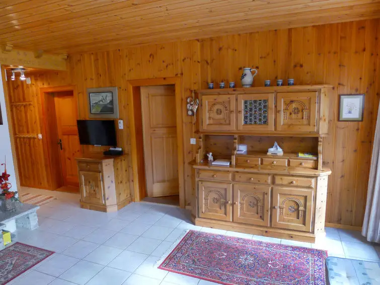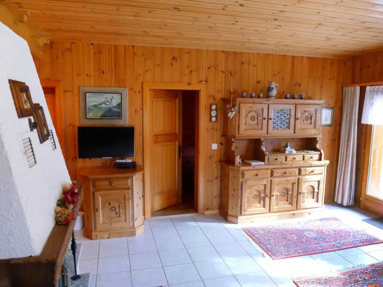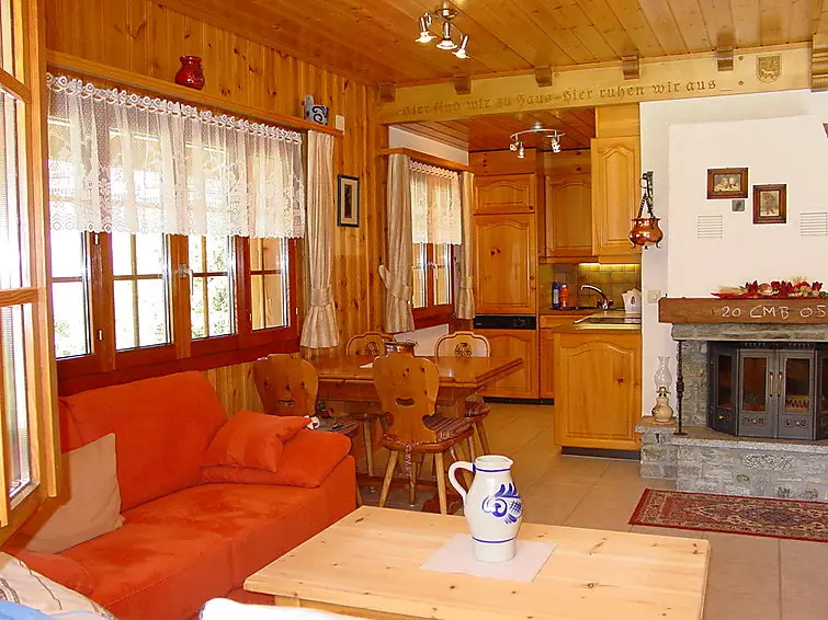 De woon-/eetkamer is ingericht met een open haard en Sat-TV (Flatscreen TV), evenals een radio. Vanuit de woonkamer is er een uitgang naar de zitplaats in de tuin. Het chalet heeft twee slaapkamers, elk met 2 bedden. De open keuken is voorzien van een oven, afwasmachine en 4 keramische glas kookplaten, en heeft tevens een eettafel. Er is een douche/WC aanwezig. Het chalet wordt verwarmd met elektrische verwarming en houtverwarming, en beschikt over een boiler van 130 liter. Gasten kunnen genieten van een ruime zithoek in de tuin van 150 m², compleet met terrasmeubelen en een barbecue. Het chalet biedt een prachtig uitzicht op de bergen, het dal en het omliggende landschap. Voorzieningen zoals een wasmachine en haardroger zijn beschikbaar voor de gasten. Let op: het chalet is een niet-roken accommodatie.