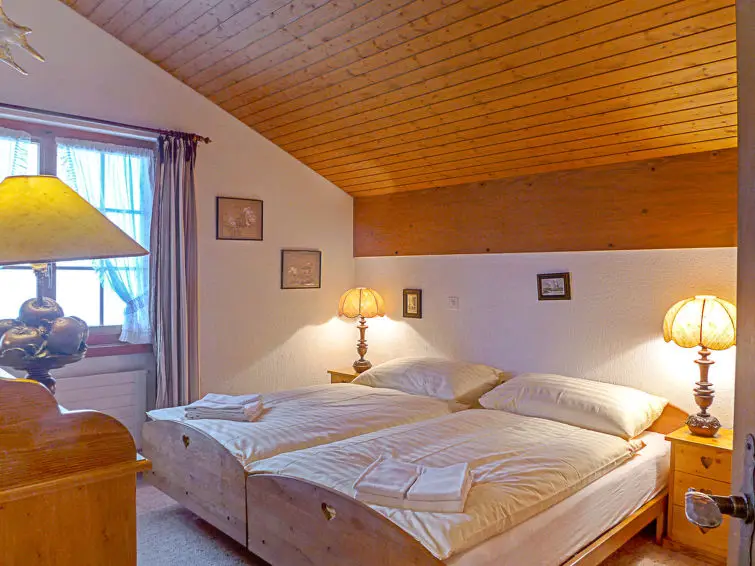 Het appartement is een gezellig en licht verblijf op twee verdiepingen, gelegen op de eerste verdieping van een charmant chalet in Wengen.
