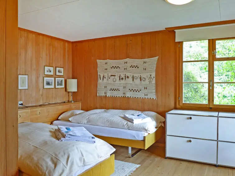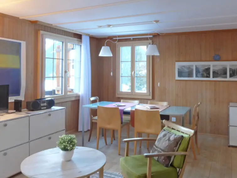 Het gezellige appartement bevindt zich op de bovenverdieping van een chalet, met een oppervlakte van 53 m2, smaakvol ingericht en deels gerenoveerd, gelegen in een rustige en zonnige omgeving op een heuvel buiten Wengen.