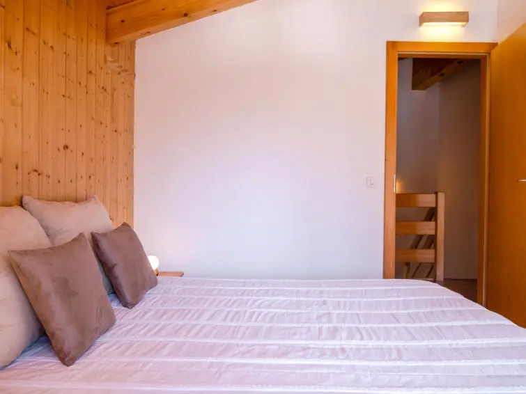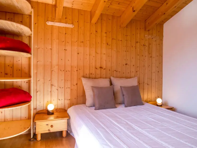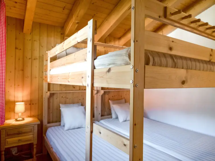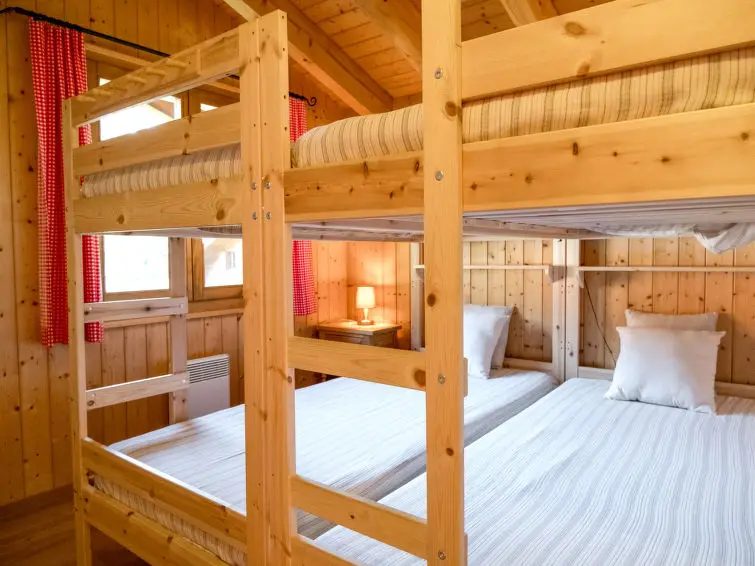 Op de bovenverdieping bevinden zich drie slaapkamers: één met een tweepersoonsbed (160 cm x 200 cm) en een uitgang naar het terras, één met een tweepersoonsbed (140 cm x 200 cm) en ook een uitgang naar het terras, en één met twee stapelbedden (90 cm x 200 cm). Er is ook een badkamer op deze verdieping.
