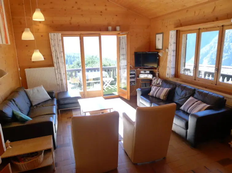 Het chalet beschikt over een kleine zithoek in de tuin, terrasmeubelen en balkonmeubilair, evenals bergruimte voor ski's. Gasten kunnen genieten van een prachtig uitzicht op de bergen en het dal. Voorzieningen zoals een kinderbed en gratis draadloos internet (WiFi) zijn beschikbaar voor de gasten.