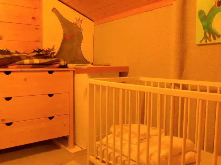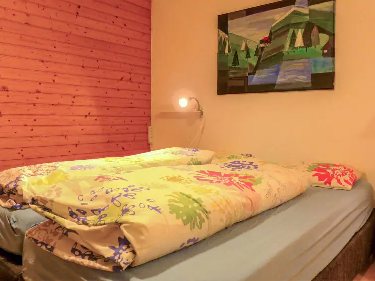 Op de begane grond bevindt zich een kamer van 7 m² met 2 bedden, evenals een apart toilet. Het souterrain heeft een kamer van 11 m² met 2 bedden en een wastafel, met directe toegang tot de tuin, en een tweede kamer van 7 m² met 2 bedden en een aangrenzende douche/WC. Op de bovenverdieping bevindt zich de woon-/eetkamer, uitgerust met Sat-TV (Flatscreen TV), een stereo-installatie en een DVD-speler. Vanuit de woonkamer is er toegang tot het balkon, dat op het zuidwesten is gelegen. De open keuken op deze verdieping is volledig uitgerust met een oven, afwasmachine, 4 keramische glas kookplaten, broodrooster, waterkoker, en een diepvriezer. Op de tweede verdieping bevindt zich een kamer van 8 m² met afgeschuinde daken en 2 bedden. Er is ook een klein babykamertje met een kinderbed, commode, kinderstoel en 2 stoeltjes voor kinderen tot 10 jaar.