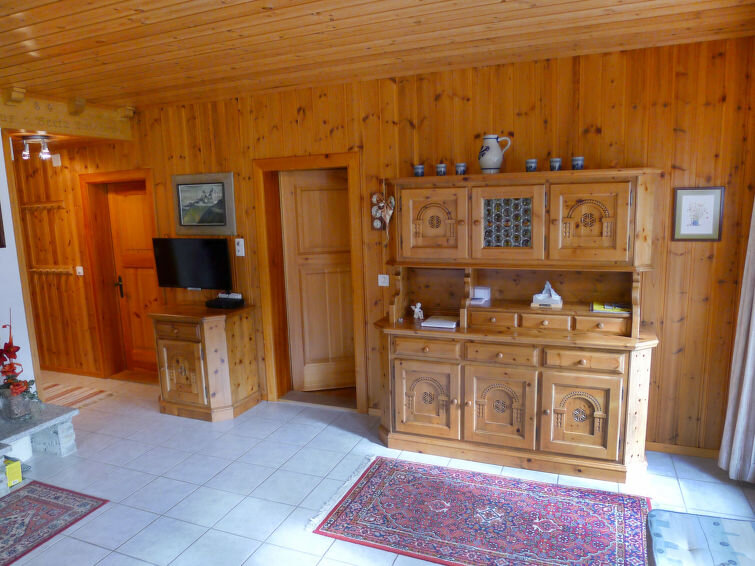 De woon-/eetkamer is ingericht met een open haard en Sat-TV (Flatscreen TV), evenals een radio. Vanuit de woonkamer is er een uitgang naar de zitplaats in de tuin. Het chalet heeft twee slaapkamers, elk met 2 bedden. De open keuken is voorzien van een oven, afwasmachine en 4 keramische glas kookplaten, en heeft tevens een eettafel. Er is een douche/WC aanwezig. Het chalet wordt verwarmd met elektrische verwarming en houtverwarming, en beschikt over een boiler van 130 liter. Gasten kunnen genieten van een ruime zithoek in de tuin van 150 m², compleet met terrasmeubelen en een barbecue. Het chalet biedt een prachtig uitzicht op de bergen, het dal en het omliggende landschap. Voorzieningen zoals een wasmachine en haardroger zijn beschikbaar voor de gasten. Let op: het chalet is een niet-roken accommodatie.
