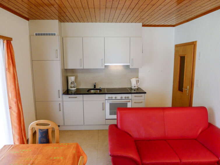 Bij binnenkomst bevindt u zich in de woon-/eetkamer, die is uitgerust met een satelliettelevisie, radio en een eethoek. Er is een slaapkamer met een tweepersoonsbed en een tweede slaapkamer met twee eenpersoonsbedden. Vanuit de woonkamer heeft u toegang tot een zitplaats in de tuin, waar u kunt genieten van het prachtige uitzicht op de bergen. De open keuken is goed uitgerust met moderne voorzieningen, waaronder een oven, afwasmachine, keramische kookplaten, magnetron, raclette oven en fondue set. Er is een douche en toilet aanwezig in het appartement. Buiten is er een zithoek in de tuin, op het zuiden gelegen, met terrasmeubelen waar u kunt ontspannen en genieten van het mooie uitzicht op de bergen. Voorzieningen zoals gratis draadloos internet (WiFi) zijn beschikbaar voor de gasten. Het is een niet-rokers woning.